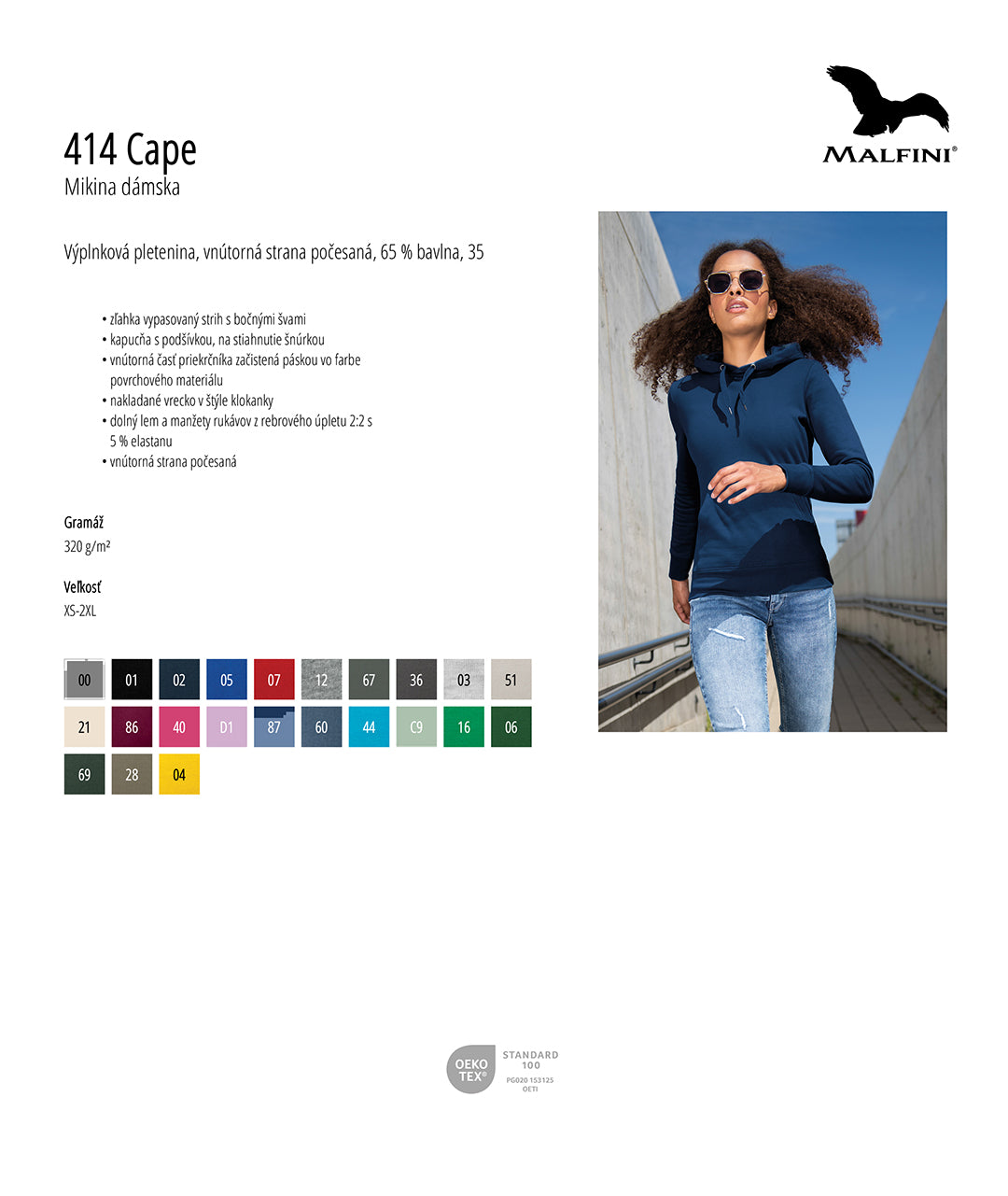 Mikina je vyrobená z kvalitných materiálov, veľmi dobre spracovaná, odolná, pohodlná na nosenie. Výrobok má certifikát Oeko-Tex® Standard 100