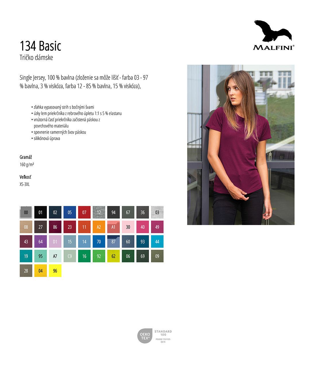 Tričko je vyrobené zo 100% bavlny, veľmi dobre spracované, odolné, pohodlné na nosenie. Výrobok má certifikát Oeko-Tex® Standard 100