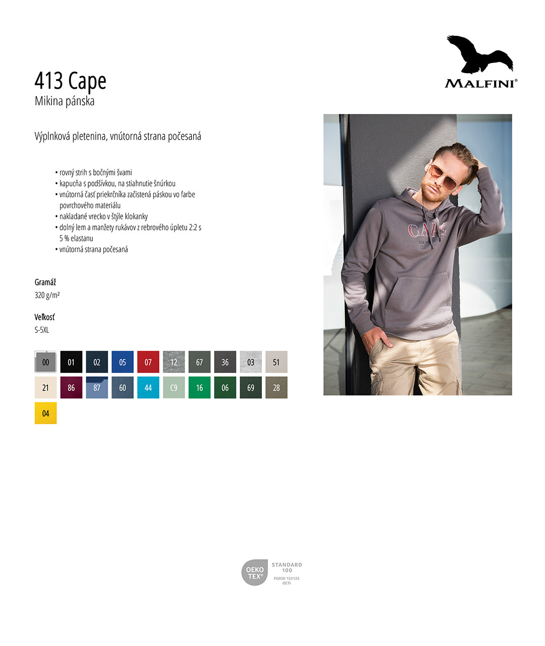 Mikina je vyrobená z kvalitných materiálov, veľmi dobre spracovaná, odolná, pohodlná na nosenie. Výrobok má certifikát Oeko-Tex® Standard 100